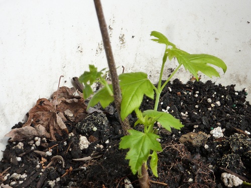 一直到天氣好了,才去把他給扶正。。居然發現長出了新葉!!!