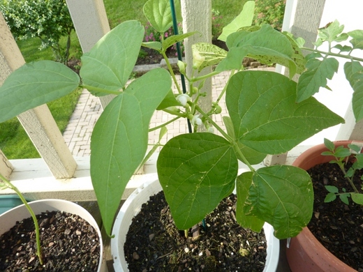 今年的種植都不太理想,看到種植的東西都小小棵的,黃臉婆也沒有太雞婆去加裝支撐架。一直到上個星期,一場大狂風,把可憐的植物吹得東倒西歪,以為都給吹斷了,没料到風過後,看到他們還努力的支撐著。黃臉婆忽然感到自己真的是狠心的媽媽,於是快點去儲藏室把去年買的支架,拿出來給蕃茄還有豌豆插好,綁上。這樣總是可以稍微心安些,也放心些了。。^_^