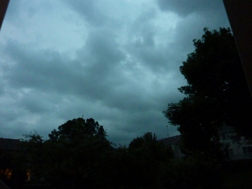 龍捲風警報咤響。正在看電視的我們,電視節目一直被公共警報中斷。聽到屋外轟隆隆的雷聲,呼呼叫的風聲。。電視公共警報到了要大家都到地下室,或是避難室,不要外出。黃臉婆才透出頭去拍了張龍捲風來前的天空。這次的龍捲風很靠近芝加哥,慶幸沒有在我們這附近落地。聞到大地之母,真的在生氣的味道了。。