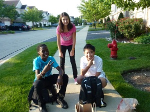 鄰居(同學)的媽媽便順路把三個孩子一起帶去學校。