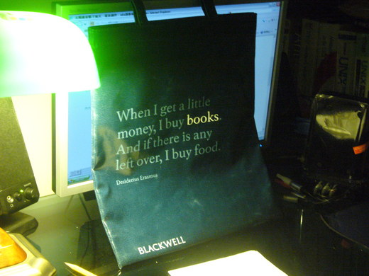 前同事不知從哪看出我「寧捨food也不能沒有book」的本性,不論如何,我確信這書袋會陪著我,繼續嗜讀下去。