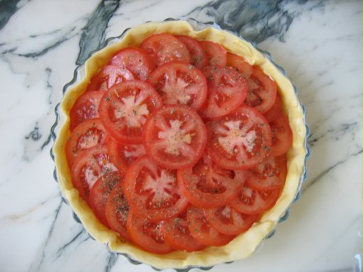 這個 tarte moutard 應該是等於美國的 quiche 吧? (一種 加了蛋和 cheese 和其他調配料再放在 pastry 裏一起烤) 不過沒看過這麼美都是番茄的.
