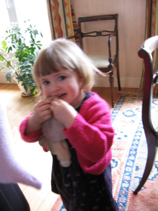 姐姐已經三歲了,超級活潑,我要幫她拍照的時候,還妝害羞,動來動去,所以畫面始終是模糊的,不過我拍了大概五六張,她每一張都在咬那個熊......