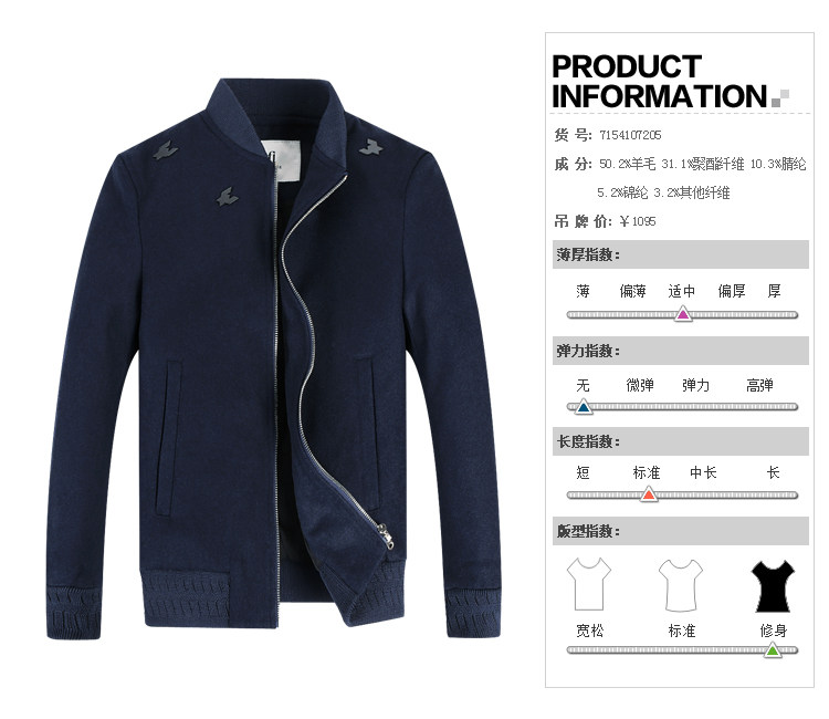 發現網購價格最便宜,馬克華菲羊毛夾克男士外套2015冬裝棒球領純色正品jacket 潮 7205 - 521927623592還曾在 天貓購物商城 類造成搶購熱潮,