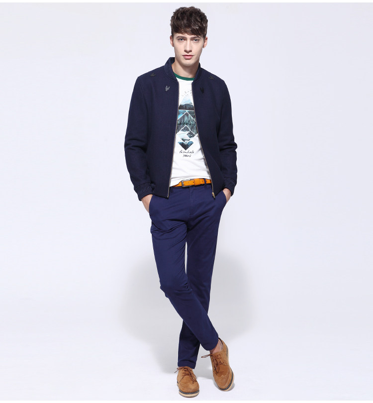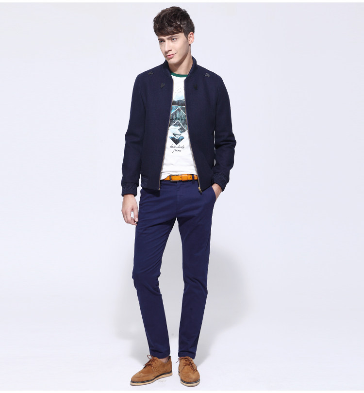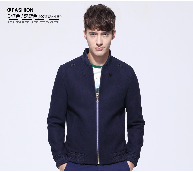 馬克華菲羊毛夾克男士外套2015冬裝棒球領純色正品jacket 潮 7205 - 521927623592