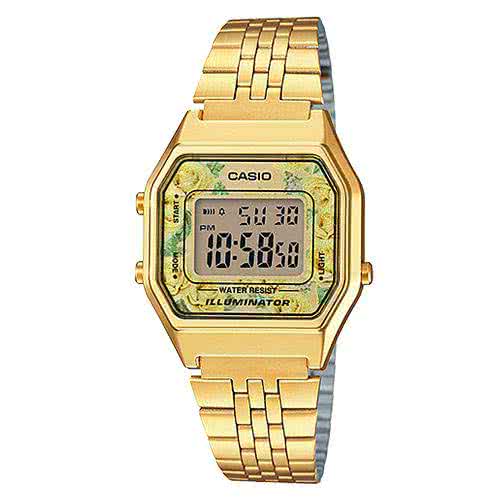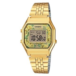 最暖的陽光-【CASIO】方格春之花卉金色電子錶-花團錦簇(LA-680WGA-9C)