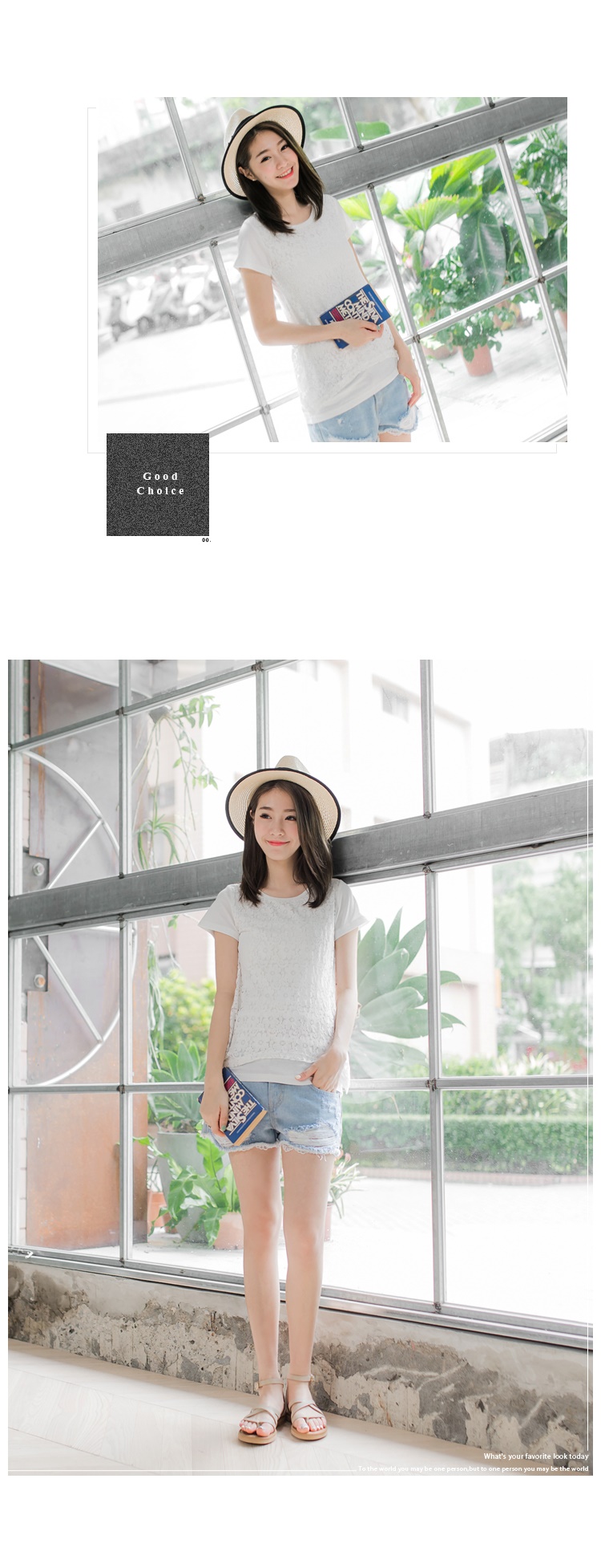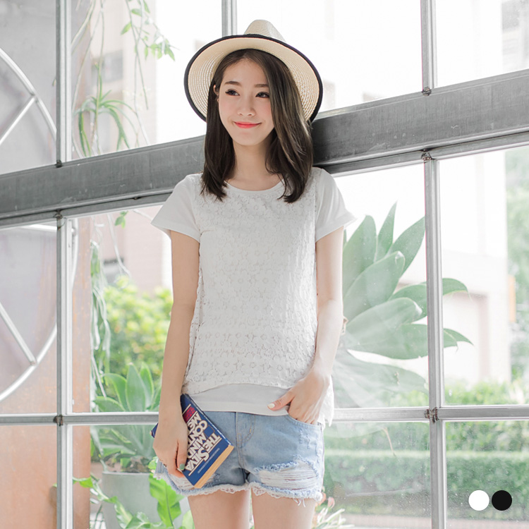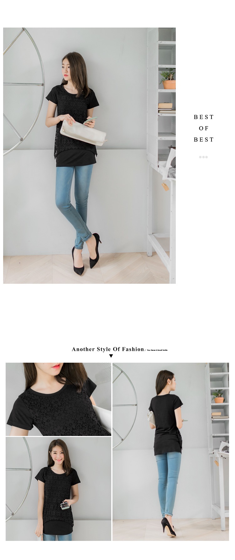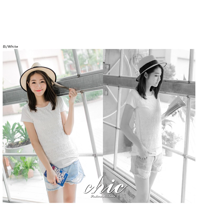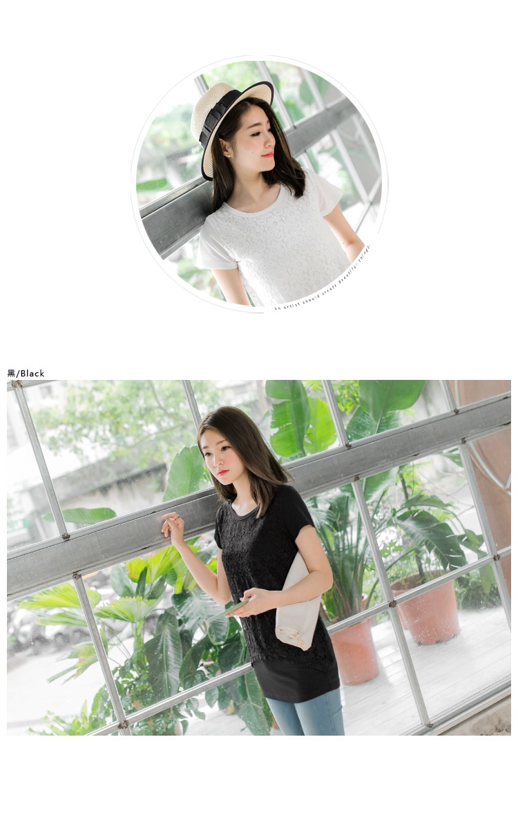 0621新品 唯美蕾絲層次單色假兩件式上衣.2色