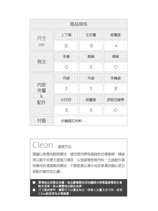 材質 : 包體主料是緹花布料