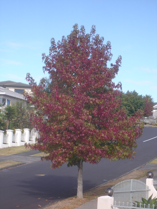 而 社區裡的楓香,也一棵棵由綠 轉黃 變紅。然後,撒滿了一地的 落葉。