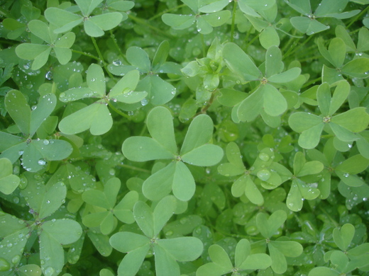 記得幾年前,在上海工作時,宿舍小區花園裡,也有好多酢醬草,偶而經過,我總是低著頭蒐尋幸運草的蹤跡,老闆覺得很好奇,便問我原委,... 啊~,原來那不是雜草啊,而且還有三葉酢醬草與四葉幸運草之分。> <