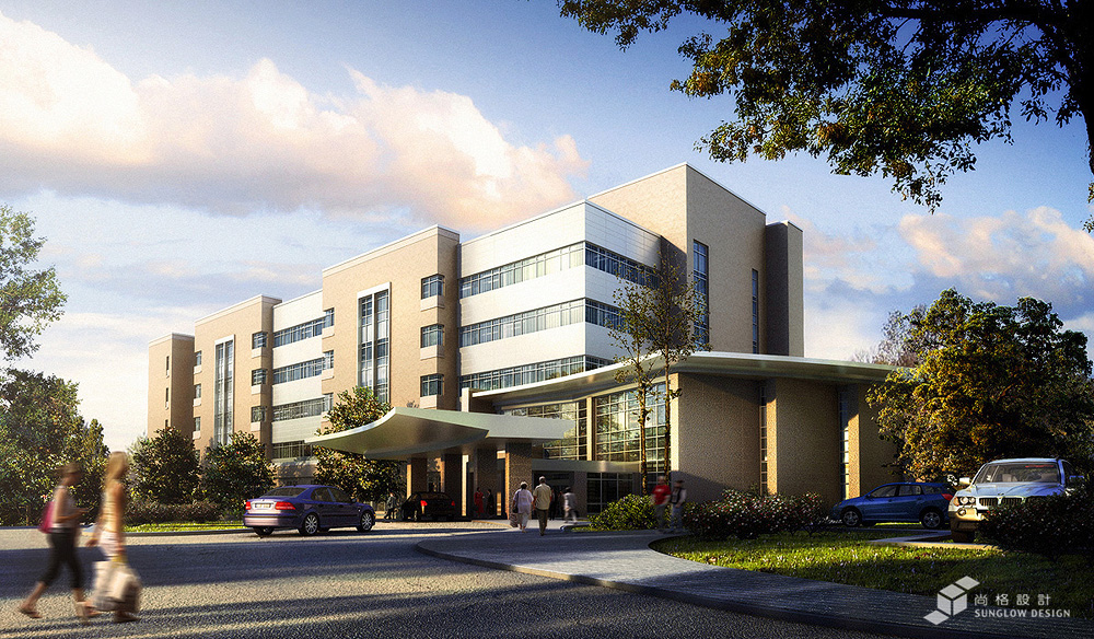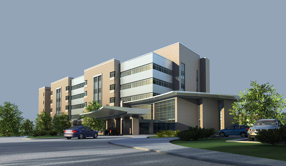 這是2009年幫美國業主畫的醫院外觀透視圖,使用黃昏時光影對比強烈的手法來表現,這是完稿。