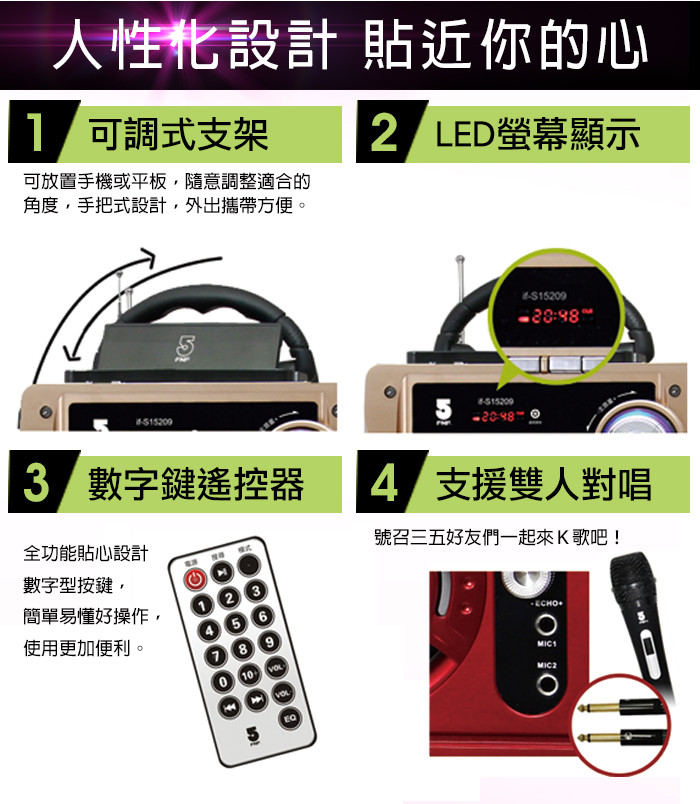 天籟K歌手提式行動卡拉ok音響(含兩支麥克風) if-S15209