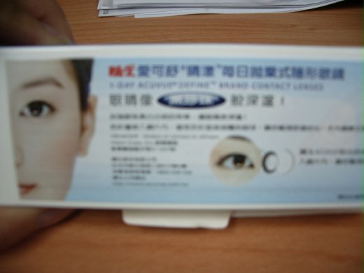 其實我迷上了最近超火可讓女人眼睛變的像洋娃娃一樣的瞳孔放大鏡,第一次試戴的感覺好怪哦!老覺得眼睛快掉出來,且有稍微刺刺的感覺,可能我的黑眼球本來就滿黑的,且不小,所以戴起來的效果沒啥變大的感覺,但有感覺亮亮的,比較有神,但一付要平均要64元,所以還是有PARTY時再戴好了,12月份最多PARTY了~~
