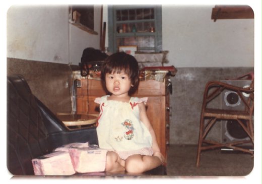 第一次當小花僮,忘了幫誰,改天問一下媽媽,這張照片還是從嬸嬸家翻出來的,其實還有第二張是換上白紗,但比較不清楚。但腦袋中有印像,如果是參加喜攤,媽媽都會幫我穿上粉色系的小洋裝,綁上二個包包頭,很有中國味吧~哈