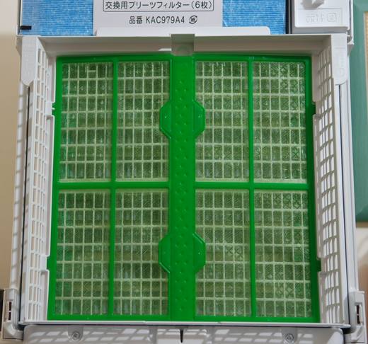 這是機器本身的第一層[綠色的]: 預濾網(含兒茶素)