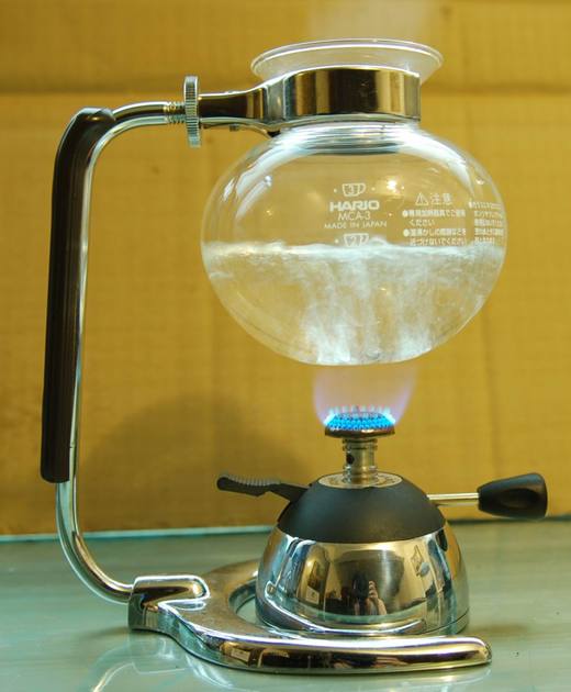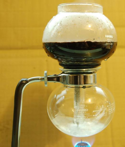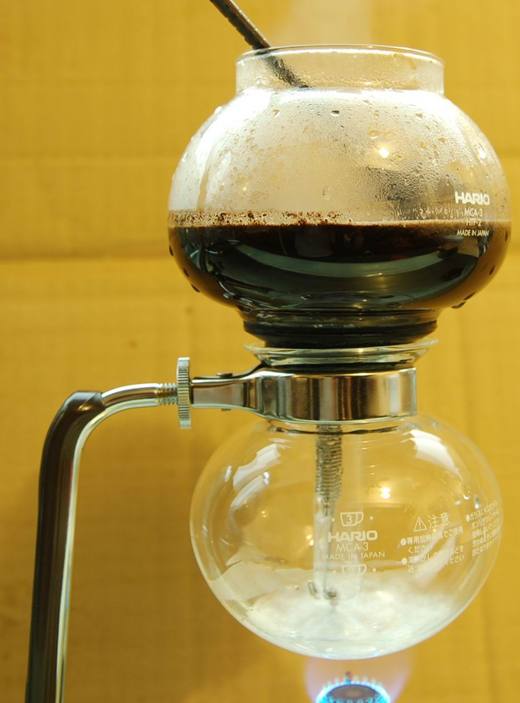 再將上方放有咖啡粉的玻璃杯小心插下去.(小心燙喔!!)