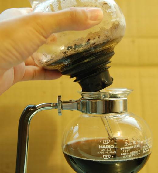 上方咖啡會往下流.若要加快往下流速度可以加濕布蓋住底部.