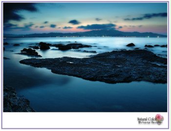 東北角海岸由基隆至頭城,台2號濱海會公路暑期假日車多,總是走走停停,沒辦法沿途湛藍的海岸山脈,美景處處在。使得收假回程,塞車回到家總是深更半夜,所以提早回程是最好的辦法。圖中以馬岡、觀光坪、澳底漁港沿岸風光,一般拍攝東北角海景應是日出時光,最好使用廣角鏡,可表現岩石垮張氣勢磅礡, 連成海天一幅自然夢幻美景!