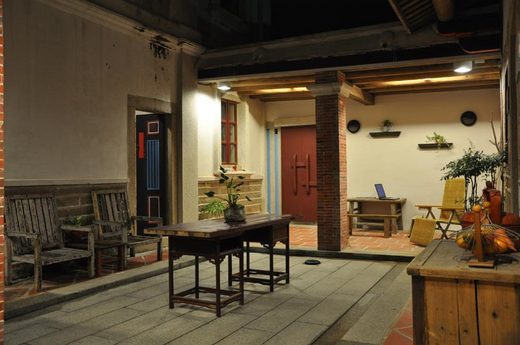 是一個失眠的深夜,我在天井觀望滿天的星斗,吃著高老師給我留的文旦,心裡充滿了感恩.雖然今晚因陪客人無法參加他們的家庭聚會.也好.讓他們可以自在的分享我的生活空間.我是非常樂意的,我想這個天井是整棟洋樓的靈魂,每個來住宿的客人都喜歡在這裡聊天泡茶,一年了,這裡曾留下了無數過往迎來的笑聲,今夏李國忠教授回來 (原屋主的第三代子孫,是他努力的撮合,洋樓才得以全新的面貌活化.)我們就在這天井長聊,聊這棟洋樓的歷史,聊他的阿公落番的奮鬥史.曾經他們是經商有成的,在當時能夠蓋得起這樣的豪宅,在古寧頭算是數一數二的.另一棟就是現今人氣觀光景點—北山古洋樓.古寧頭大戰時,北山古洋樓被共軍據為指輝所.以當時的地裡位置和至高點,此棟洋樓身負重任,我軍指揮所馬上成立和共軍對峙,臨時的醫護中心亦在此成立,於是浪漫的齊瓦哥醫生式的愛情故事也曾在這發生.