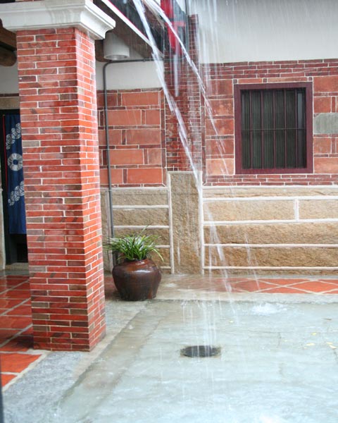 一夜未眠,好不容易熬到天亮,我坐在我家天井仰頭望著雨漏,百思不得其解,上頭有十個雨漏,每個口都開的大大的,地上卻只有一個小小的排水孔,我用我很白癡的生活邏輯想,這要不讓它淹水都很難.也就是說以後的日子每下雨必淹水,雖說金門一年下雨的日子並不多.但我想這樣的經歷再來兩三回我肯定瘋掉,所以我發文給國家公園想問問這是那位設計師的作品,真該頒給他最佳烏龍奬.