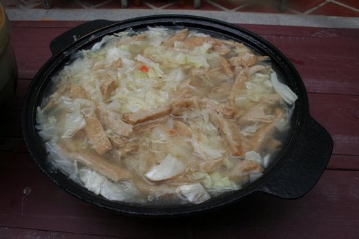 高麗菜和切了片的甜不辣一起勾芡.口咮偏甜,那種美味,現在回憶起來,還會留口水呢?