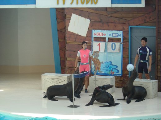 到達海洋公園的時間最好是九點左右,因為到了以後,可以先到探險島的水族館,了解各種魚類的介紹。看完後,就可以到 "晃晃海獅秀" 的表演地點,先坐個好位子,以便看十點的海獅秀。晃晃海獅秀的表演約30分鐘,建議坐在有陰影區。海獅主要會表演跳水、球類比賽等動作。