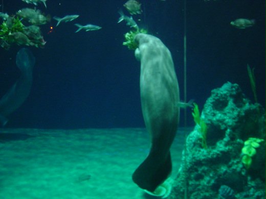 在看完飛越海洋後,搭乘纜車回到 "探險島",再走到 "海洋村" 看美人魚秀。在看美人魚秀之前,可以先花三分鐘到旁邊的海底世界,看看相關的知識。美人魚秀的表演大約為20分鐘。美人魚,即為海象,是非常稀有的動物。表演主要會分成三個部份,第一部份為影片介紹,包含海象的介紹以及海洋公園從西非引進海象的過程;第二部份為讓遊客實際的觀賞海象;第三部份為俄羅斯水中包蕾舞表演。在這個表演中,嚴禁使用閃光燈,以免打擾到海象;若有任何人使用閃光燈,劇場人員會立即中止表演。可惜常常在服務人員一而再、再而三的宣導後,總是有人要用閃光燈拍,真希望遊客可以加強素質,以免傷害海象並影響其他遊客之權益。