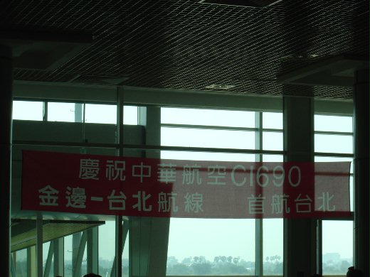 十一月四日,是華航首航金邊的日子。薰衣草機靜靜的停在停機坪,等待執行任務;旅客也早早就在登機門,等待登機時刻的來臨。七點左右,首航儀式正式開始,交通部次長、民航局副局長、桃園航空站魏主任、關稅局局長、航警局隊長、華航魏董事長與趙總經理等貴賓均出席。在貴賓致詞與剪綵之後,開始首航登機。不過只見旅客不急著登機,反而往旁邊的小點心和飲料進攻,有些人還捧一大盤上飛機咧!