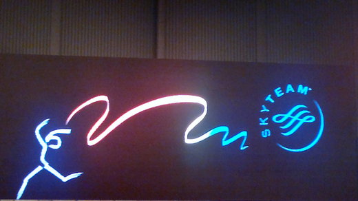 會廠正中間有個大型顯示器,秀著華航新的Logo,讓人不禁感嘆~~哇~~終於盼到了。