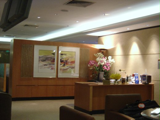 辦完報到手續之後,即通過移民局前往貴賓室。新航貴賓室整體門面設計具有高貴感,門口也有兩位服務人員檢查登機證並指引正確的貴賓室區域。原本以為頭等艙貴賓室應該是非常安靜且有隱密感,但是實際上卻是吵雜且過多的乘客在貴賓室內導致一時無法找到座位可以坐,感覺並不像其票價如此 "高貴" 。另一個失望的地方則是關於頭等艙區域內的服務中心。美其名為服務中心但是實際上卻沒有多大的功效,無論在聯絡或是確認事項等部份都做的很差,連我買的全額票要更改行程時竟然被他們說成我的票是本地特惠票而拒絕處理 (事後再向台灣的新航查證的確是全額票且沒有任何限制) ,不知道他們是有對部份國籍乘客歧視還是對於年齡的歧視,蠻失望的。唯一可取的是他們淋浴間是將毛巾等放在淋浴間內,不會像在華航中正機場貴賓室要拿著毛巾等走去淋浴間,好像是在昭告天下 "我要去洗澡了"...