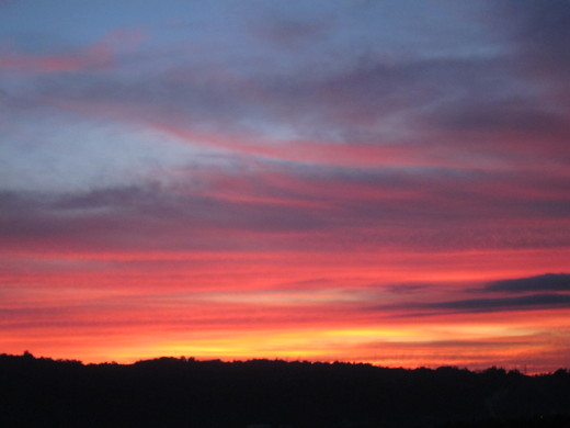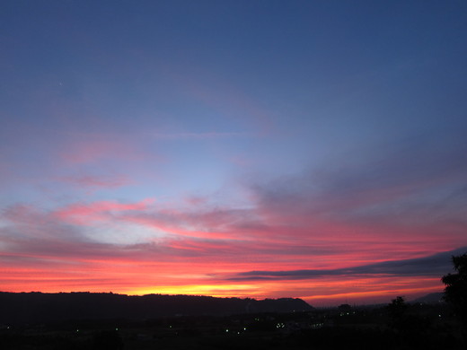 原來是太陽公公回家了,霞光真是綺麗,像是給遠處的小山穿上綢緞的禮服!