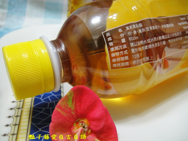 瓶身寫著詳細的品名、成份、營養標示和保存方法,有效期限則標示於瓶蓋。