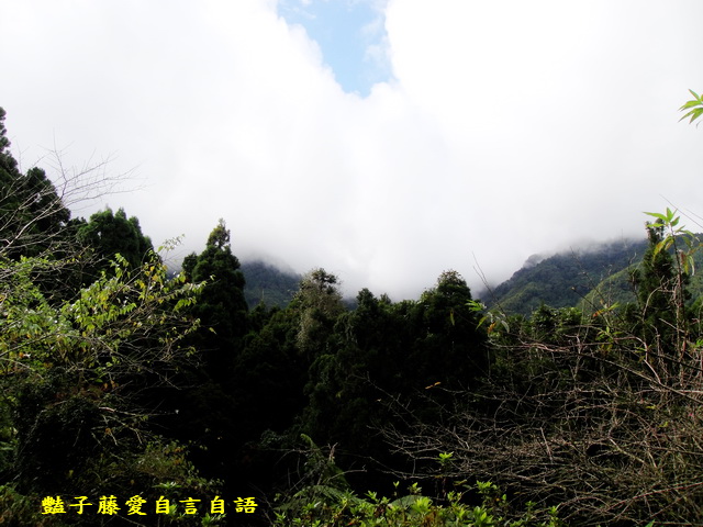 雨稍停,陽光飄緲地在遠山群峰間隱隱約約若隱若現。