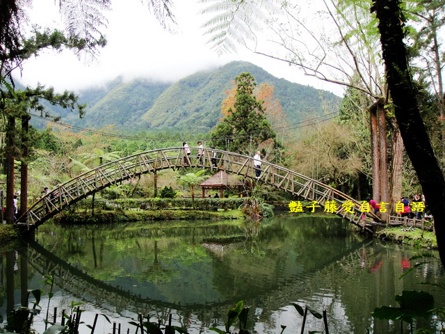 孟宗竹搭建的拱橋讓大學池成為溪頭自然教育園區的人氣景點,