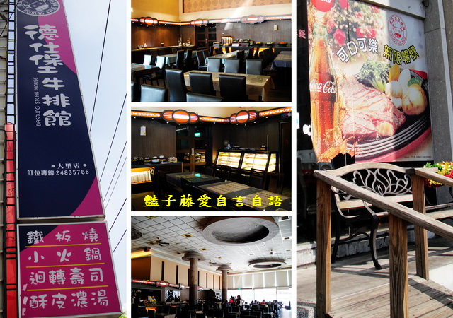【豔子藤就是愛美食】台中牛排餐廳&德仕堡牛排館(大里店)附餐自助沙拉吧無限享用迴轉壽司、小火鍋和酥皮濃湯。排餐嫩肩牛排和洋蔥雞腿排搭配黑胡椒蘑菇醬鮮嫩好吃,附餐選擇多元餐點精緻,握壽司、豆皮壽司和手捲無限享用,還有熱呼呼的小火鍋,飽餐之後,當然不會忘了精緻甜點蛋糕櫃和現烤鬆餅散發的誘惑魅力!