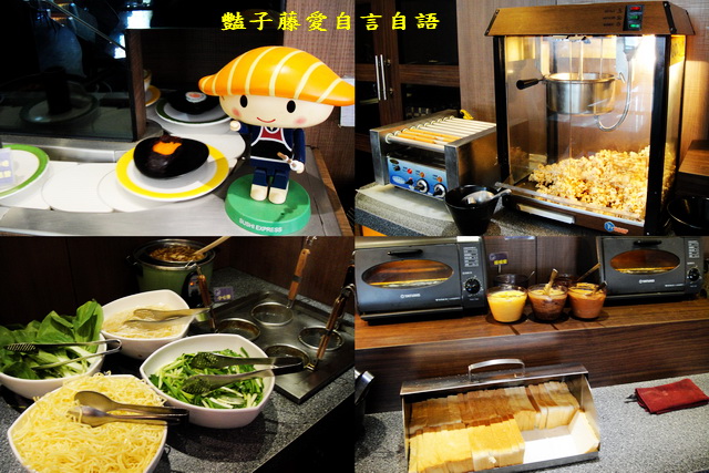 自助式擔仔麵、爆米花,喜歡烤土司還有麵包抹醬香蒜、奶油、花生、巧克力和龍眼蜜可以自由發揮。