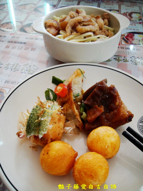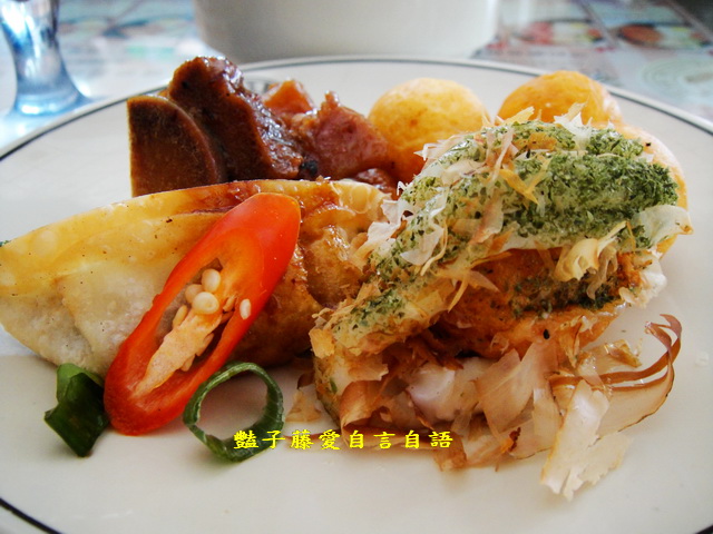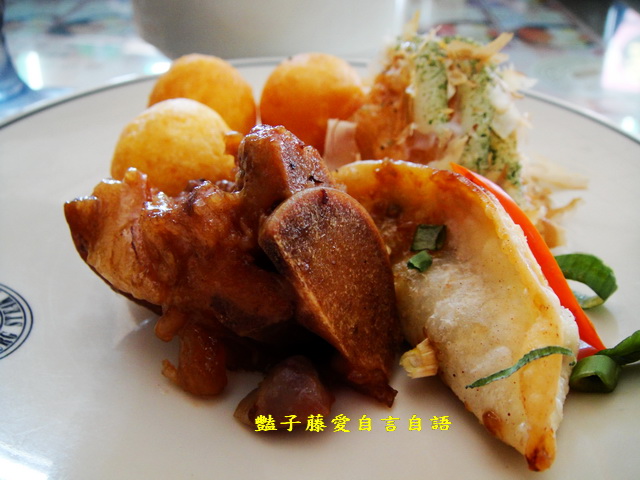 滷豬腳!滷得又Q又香,軟嫩好吃,煎餃香酥可口,章魚燒和地瓜球完全捉住了胃。