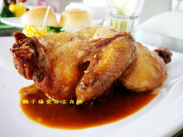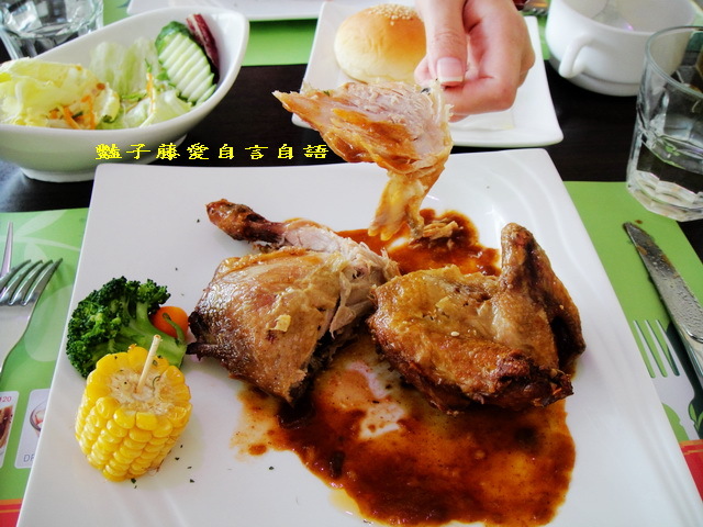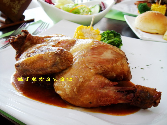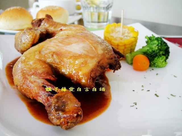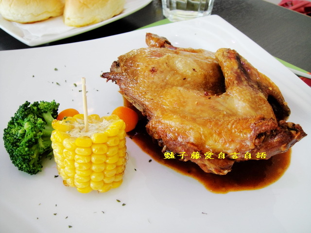 烤雞外皮烤得香脆不硬,肉質鮮嫩汁美,佐以醬汁襯托了鄉村烤雞的原始風味.