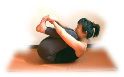 2吐氣,身體前彎,盡量讓大腿下壓靠近胸口。停留一下5呼吸,把呼吸調順,藉著吐氣讓大腿更靠近胸口。