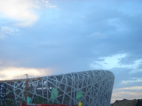 去看了奧運的主場地,是個叫「鳥巢」的運動場,其實離北京市區並不太遠,打個計程車去大約三十分鐘。