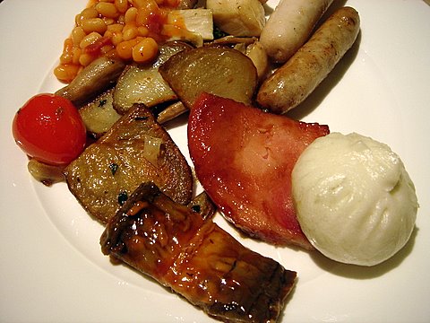 我特別拍了一張豪華早餐的照片,我花了一千多,吃了像這樣三盤,那看起來實在不怎麼健康可口。