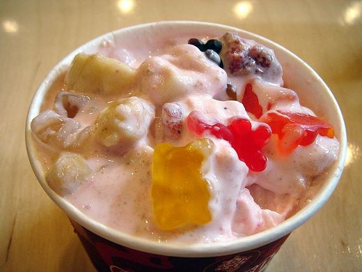 哦,差點忘了說,第一張圖片是我每次到Cold Stone一定要吃的「草莓香蕉圓舞曲」,我都會加干貝熊在上面。