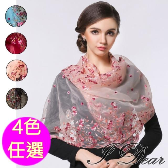 運動用品推薦 【I.Dear】純手工碎花刺繡工藝歐根紗長絲巾(5色)