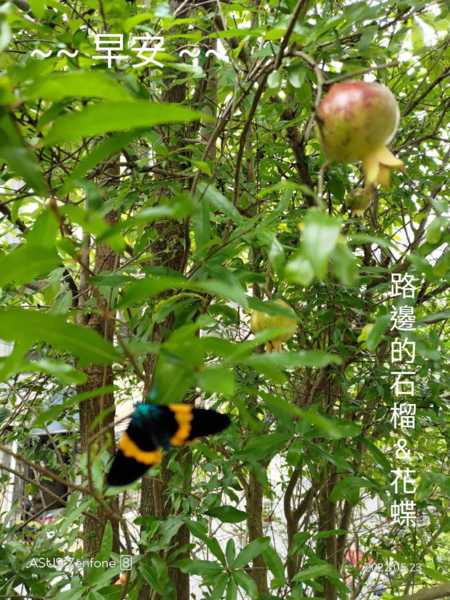 早安! 路邊的石榴&橙帶藍尺蛾 (不是蝶)
