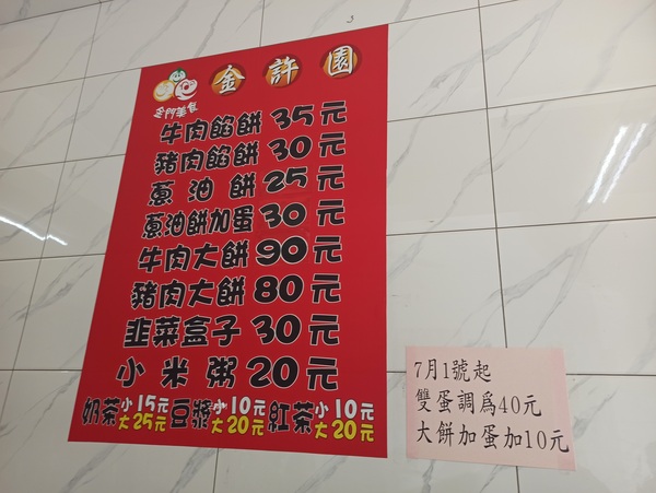 前幾天到山外金許園買早餐時看到即將搬家的公告!那時剛好聽到老闆告訴客人:新市里中正路的舊址將於09月07日結束營業!4年多前從自強路搬到了中正路...沒想到又要搬家了!看了店家牆上的告示位於武德新莊的新址將於09月10日重新開門迎客,這2天剛好都到山外洽公,今天是中正路舊址最後一天的營業日,於是我就上門買早餐買回憶...搬到武德新莊的金許園金湖店今