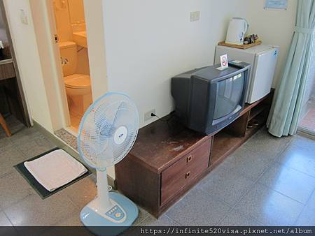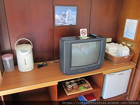 熱水瓶、電視機、盥洗用品、茶包、小冰箱