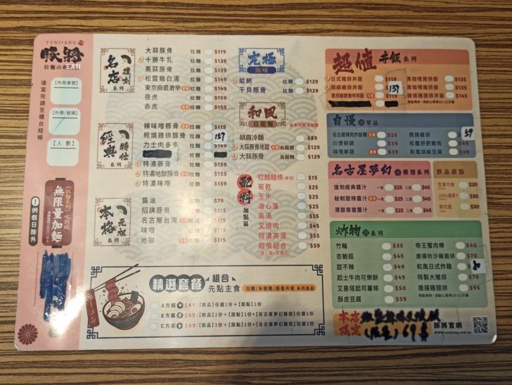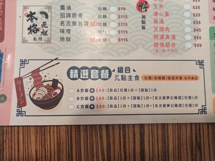 豚將日本拉麵金門店的菜單Menu