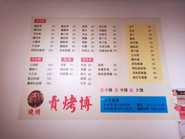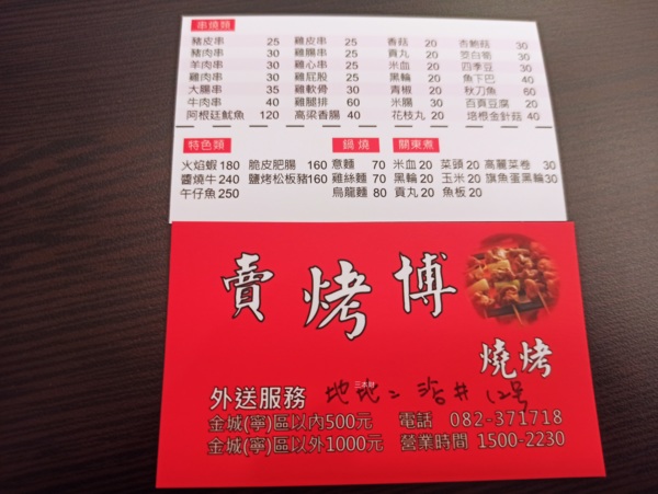 【金門‧金城食記】賣烤博燒烤~晚餐~營業時間、訂位電話、菜單價目表、公車及交通資訊