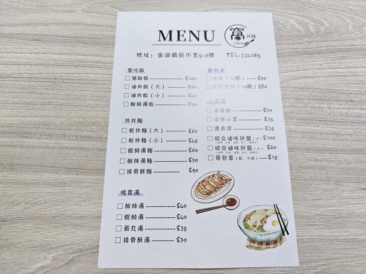 【金門‧金湖食記】窩拌麵~晚餐~營業時間、訂購電話、菜單價目表及交通資訊