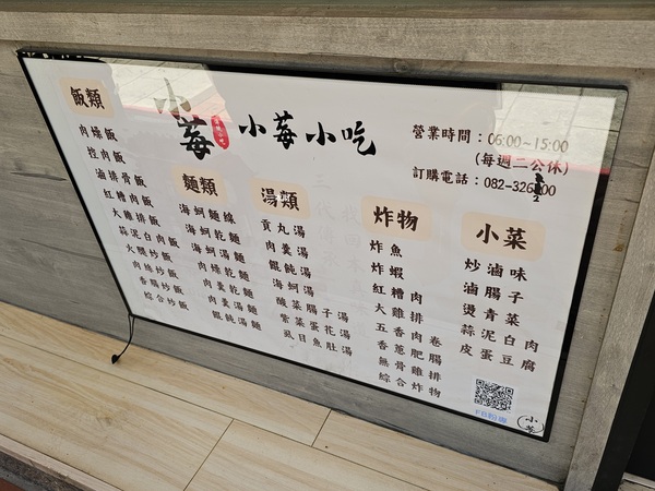 小莓小吃店位於金城地區的中興路上可算是一間平價的小吃店,這家開業多年的小吃店提供的餐點跟一般傳統小吃店相比相對多了一些如:蚵仔麵線、肉燥飯、排骨麵、餛飩麵、切仔麵、肉羹麵、湯品、炒飯、炸物、小菜、飲品...猶記得第一次跟同事上門是一同吃晚餐,後來店家變更了營業時間改成中式的早午餐...